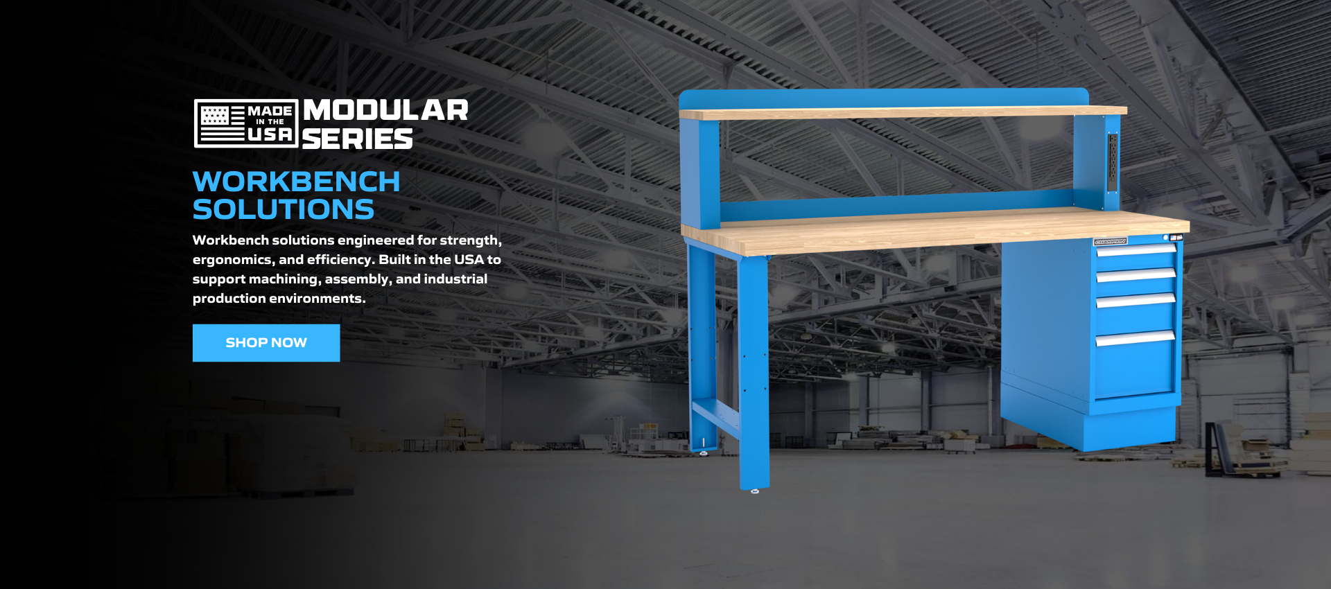 Easy-to-order Preconfigured Workbenches in three widths combined with our most popular configurations.